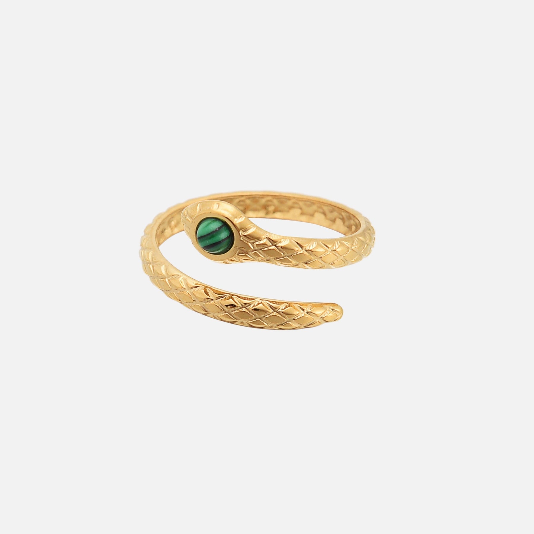 A shimmering gold Elysia snake look ring featuring a detailed serpentine. An elegant and timeless statement piece for any special occasion.