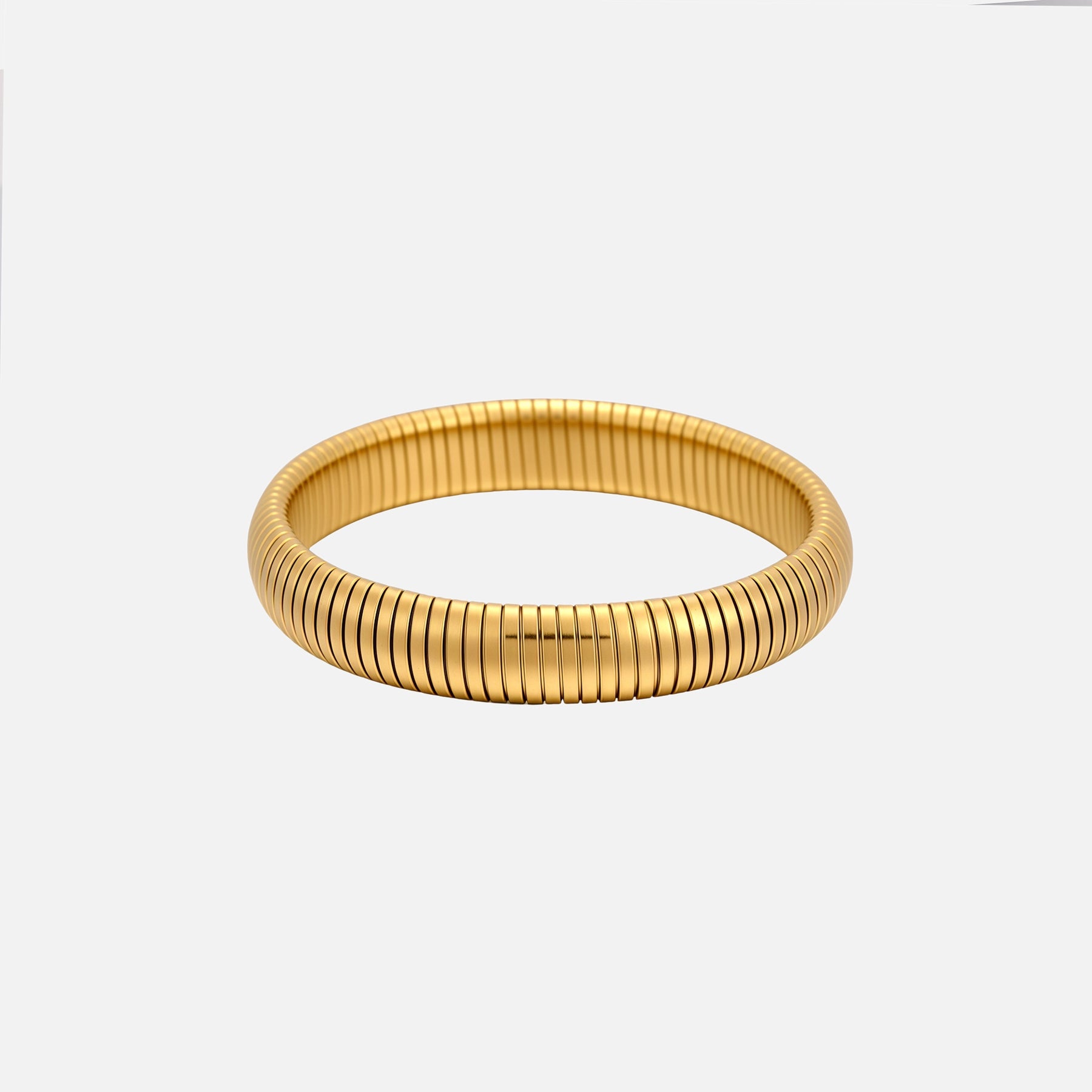 The Nova bracelet redefines minimalism with its sleek, flexible design and radiant golden finish — a timeless piece that moves effortlessly with you.