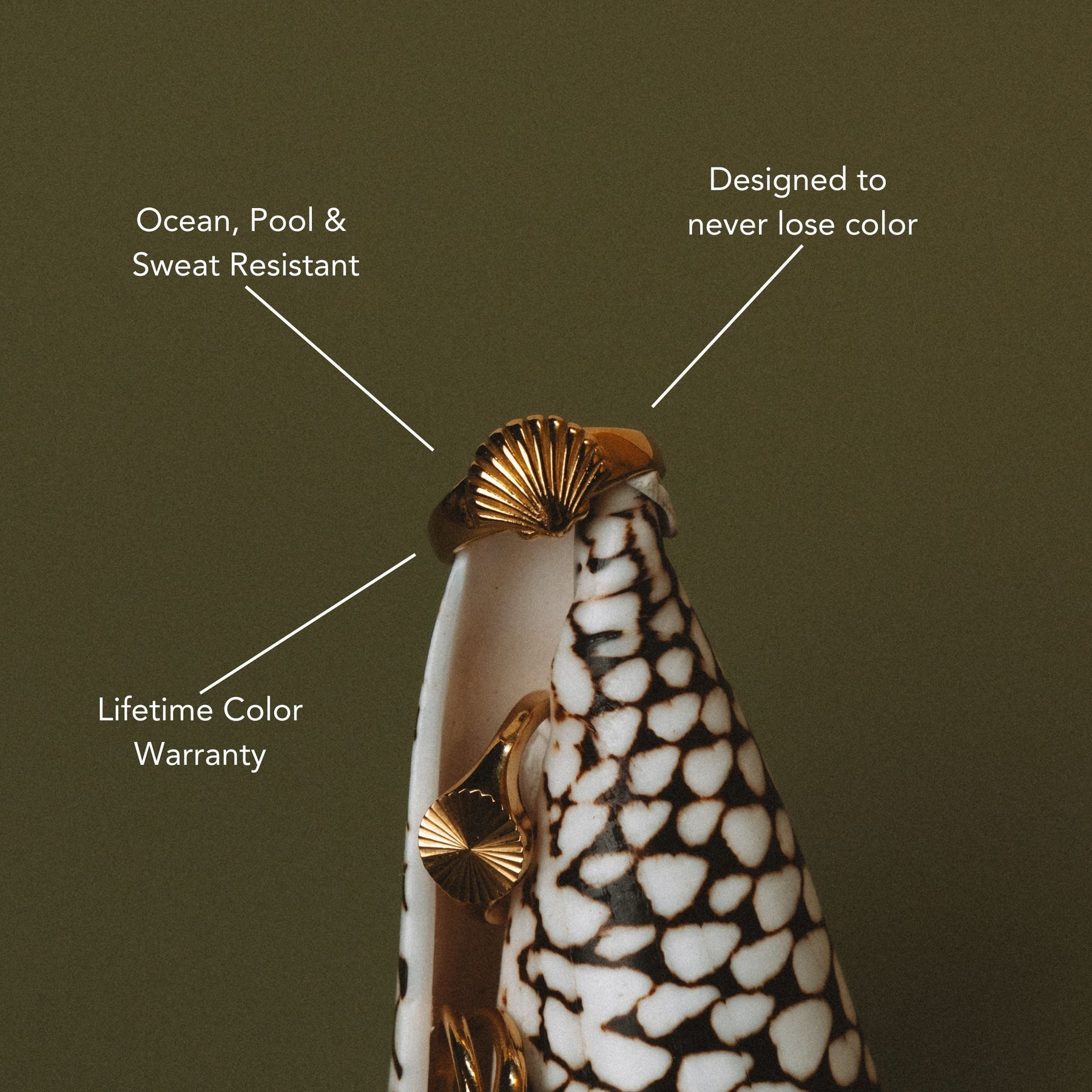 For the ones who feel most at home by the sea. The Seashell Ring is a little piece of the ocean—bold, golden, and made to move with you from sunrise swims to city streets.